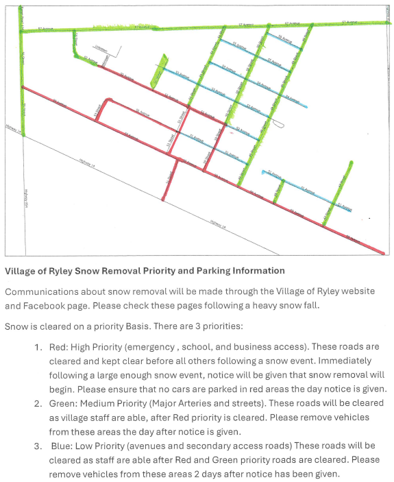 Please see below for the procedure for snow removal within the Village of Ryley: